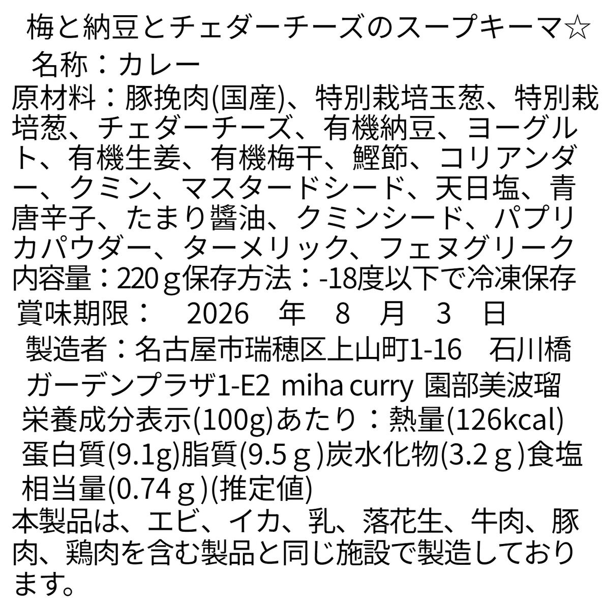 かつお出汁ベースの香り良いルーに、有機納豆、有機梅干、