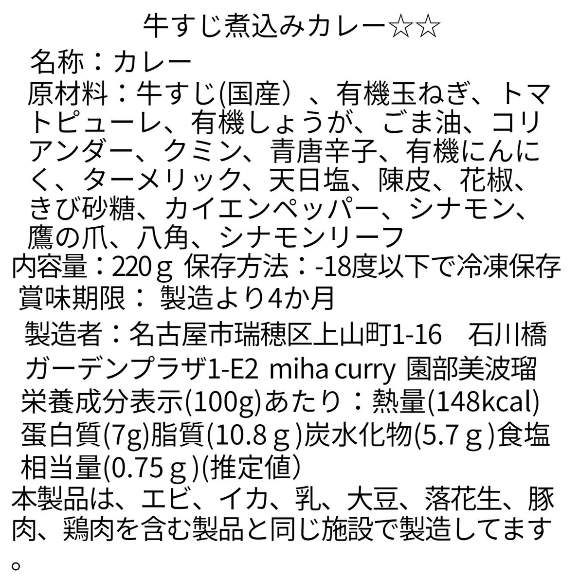 陳皮、花椒、八角など中華風のスパイスと丁寧に炒めた玉ねぎの甘味、牛すじを煮込んだ出汁から脂を取り除き、旨味だけを合わせたサラサラしたスープにごろごろ牛すじが入った、男性人気の高いカレーです。