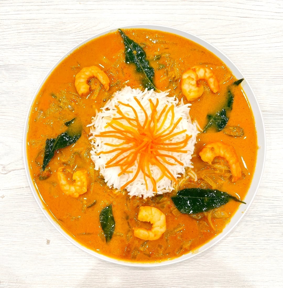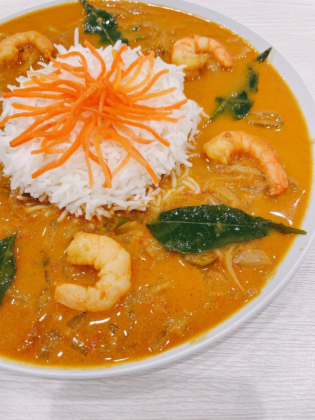 インド、ゴア地方のレシピと濃厚な甘えびの出汁を合わせて作りました。オーガニックのココナッツミルクでまろやかに仕上げた、ビスクを彷彿とさせるスープのように飲めるカレーです。フレッシュなカレーリーフが手に入る時期限定の人気メニューです。