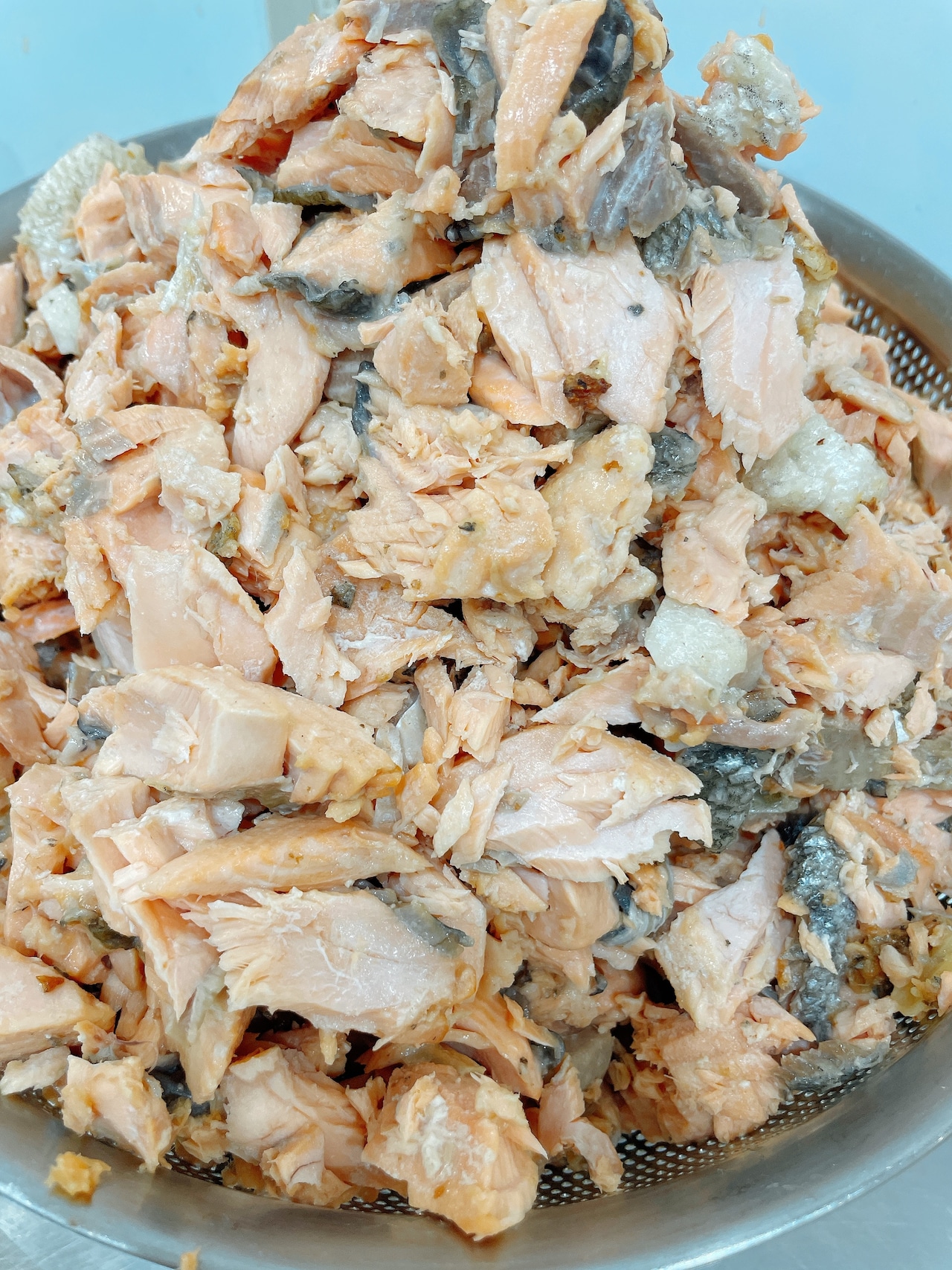 北海道産の秋鮭、をほんのりバターで焼いてほぐし、骨を取り除きました✨(とりきれていないものもあるかと思いますのでご注意ください)