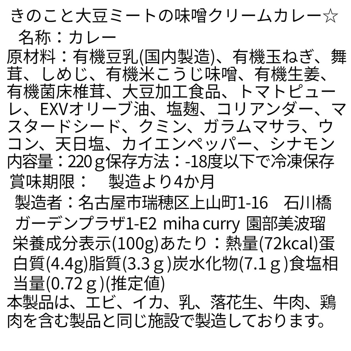 (ヴィーガン)動物性材料不使用のきのこと大豆ミートの味噌クリームカレー☆にんにく不使用